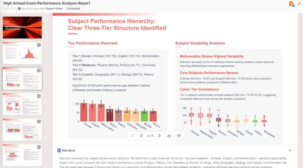 Despite the system's high level of autonomy, we recognized a fundamental truth: AI functions best as a collaborative co-pilot, not a complete replacement for human intuition. While Bayeslab delivers a one-click, narrative-driven report that is meticulously formatted and designed for executive review, human experts often need the final say to align with specific corporate nuances.